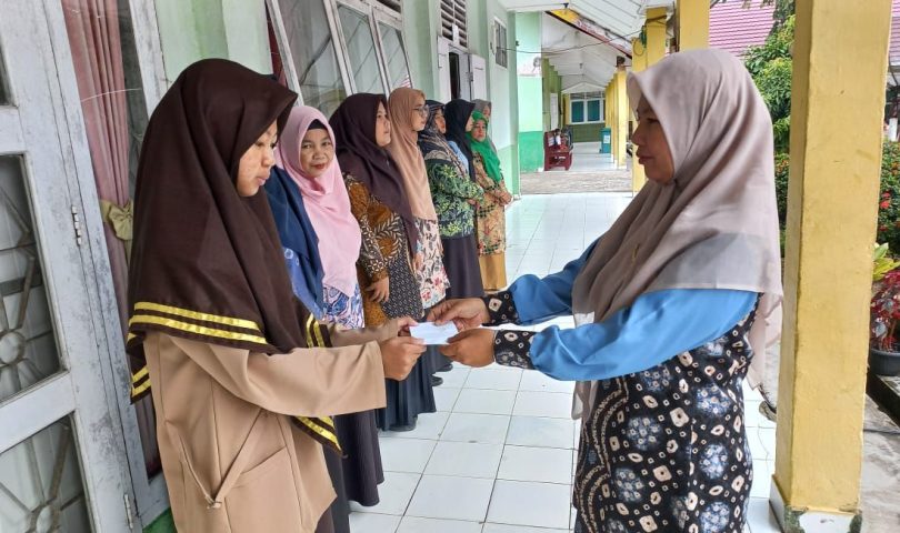 Kepala MTs Negeri 4 Musi Banyuasin menyerahkan reward kepada siswa yang telah memimpin pembacaan surat pendek. Penyerahan reward tersebut dilaksanakan pada kegiatan Pembacaan Surat Pendek Juz 30 di lapangan Madrasah. Kamis, (9/10).