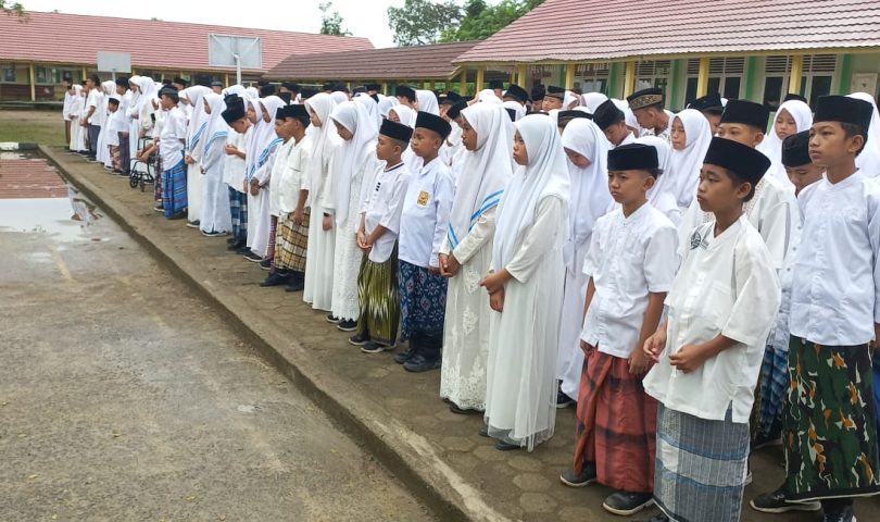 Kepala Madrasah Hj. Janiah, S.Pd., M.Pd yang bertindak sebagai pembina upacara, mengajak kita untuk merenungkan, bahwa seorang santri bukan hanya sosok yang pandai mengaji dan memiliki ilmu agama yang tinggi, tapi juga pribadi yang membawa nilai-nilai luhur yang patut ditiru oleh kita semua di madrasah ini